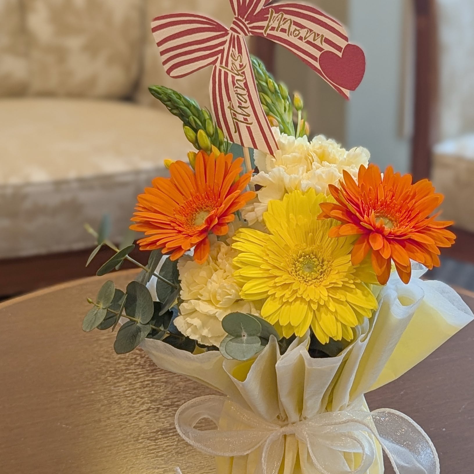 明るく華やかなビタミンカラーのブーケをいつも元気なお母さんに感謝の気持ちを込めてお届けします。