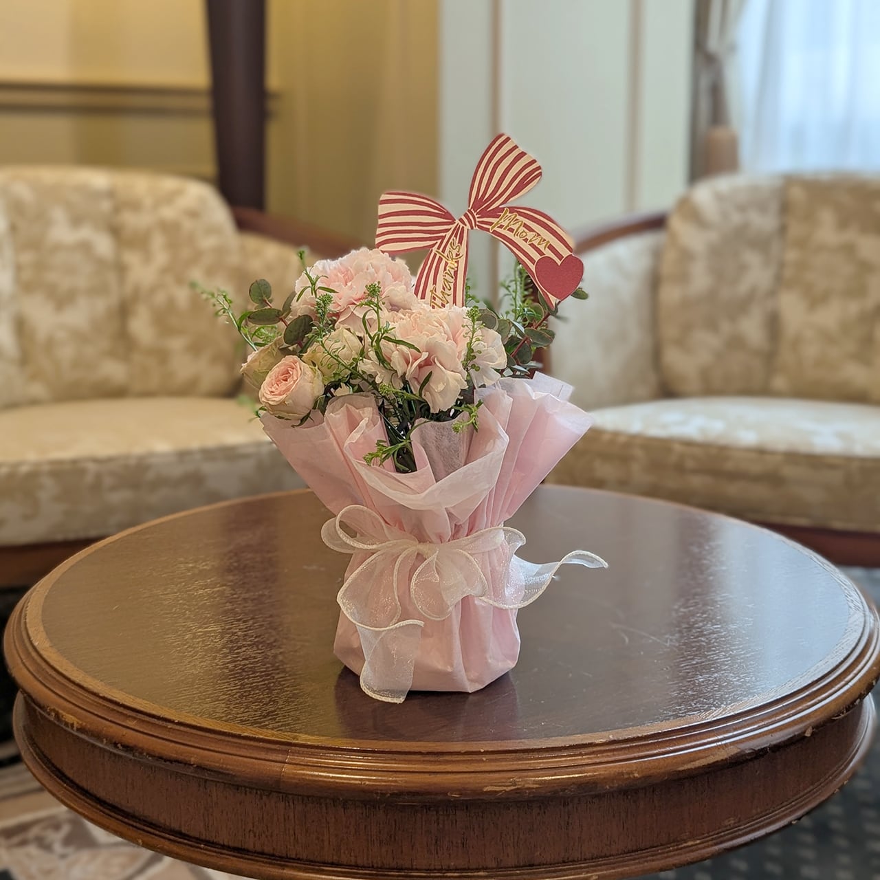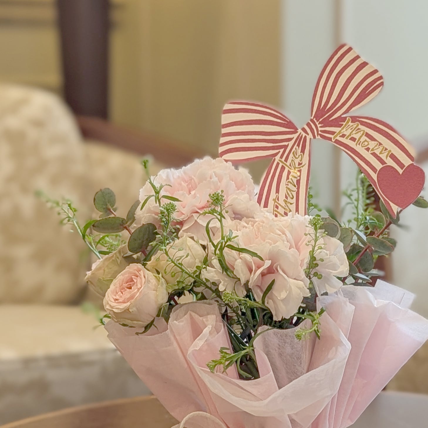 【Mother's day】淡いピンクのカーネーションのスタンディングブーケ