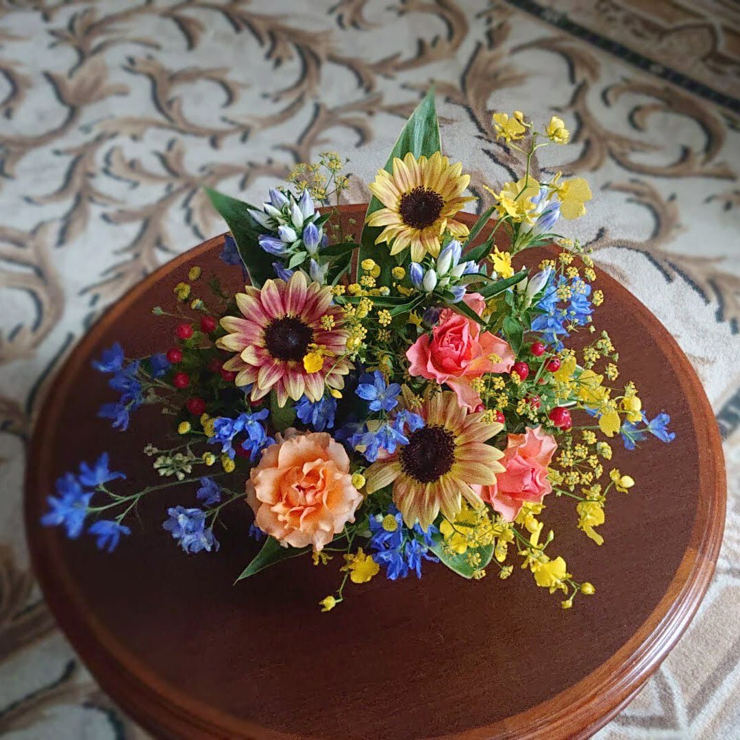ブラウン系のヒマワリを使ったアレンジメントです。