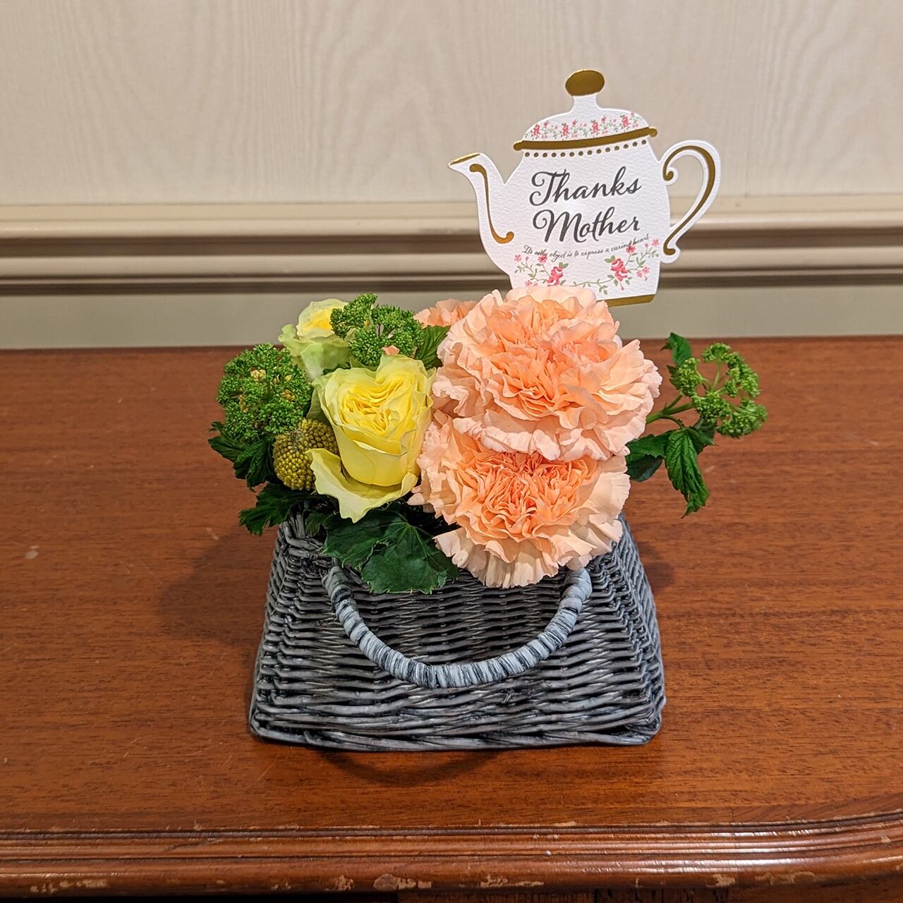 【Mother's day】カゴのアレンジメント(オレンジ)